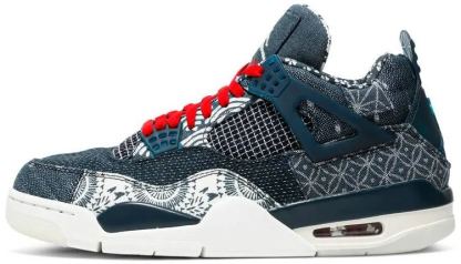 The 4 Retro SE ‘Sashiko gives the iconic silhouette a textile makeover that replaces traditional leather construction. The paneled upper is treated to varying abstract prints for a patchwork-like effect . complete with decorative embroidery that gives the nod to Japanese Sashiko stitching a traditional technique originally used to rein or rep garments for long-lasting wear. A two-tone palette of Deep Ocean and Sail is disrupted by Fire Red accents atop the tongue and within the visible sole unit.